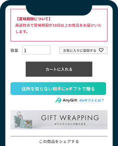 商品ページで「住所を知らない相手にeギフトで贈る」を選択します。
