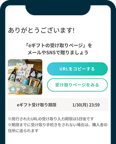 購入が完了すると、eギフトの受け取りURLが発行されます。