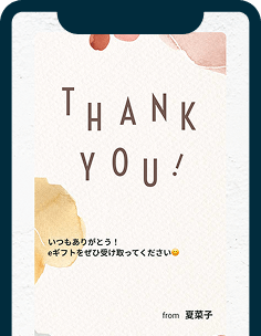 ギフトは受け取りURLを送るだけ。アミングオリジナルのデジタルメッセージカードも添えて、気持ちをすぐにお届けできます。