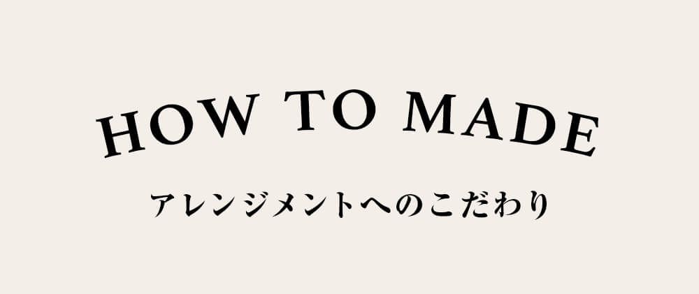 お客様からオーダーが入ってから、1点1点手作りしてお渡ししています。花一輪一輪が美しく見えるよう、専任のスタッフが丁寧に心を込めて束ねたアレンジメントです。