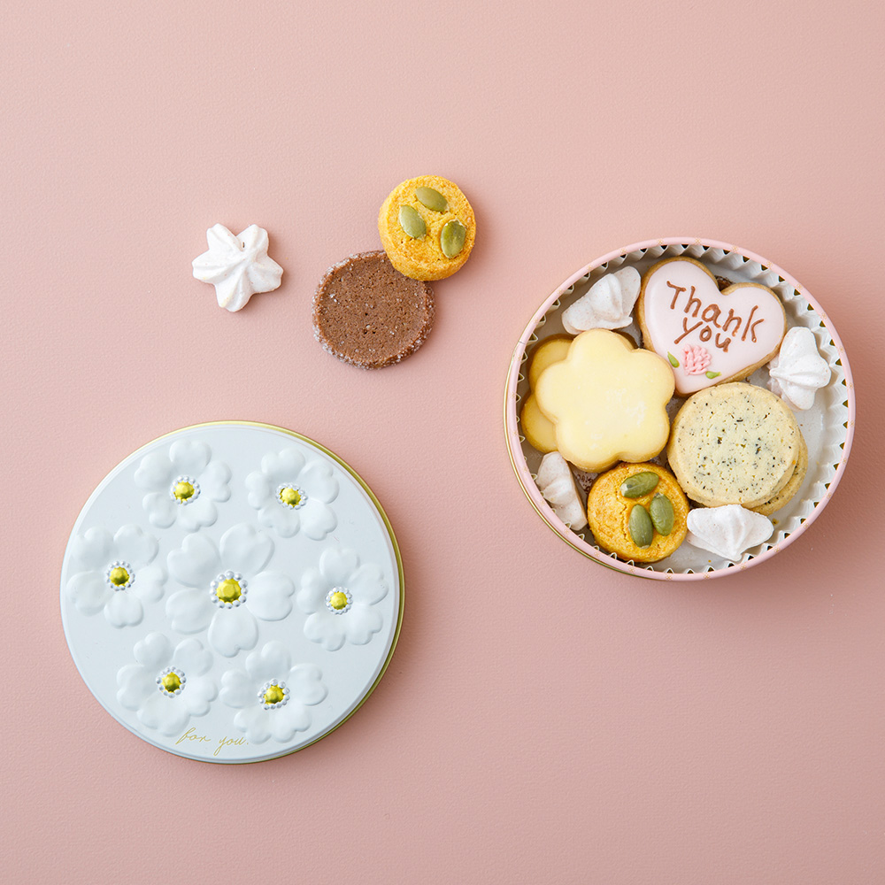 お母さんに感謝に気持ちを込めて、「thank you」のメッセージ入りアイシングクッキーと色んな味のクッキーが入っています。素材・作り方にこだわって店内で一つひとつ作り上げた、どこか懐かし素朴な味わい。家事や育児の合間、ほっと一息つく時間のお供に♪