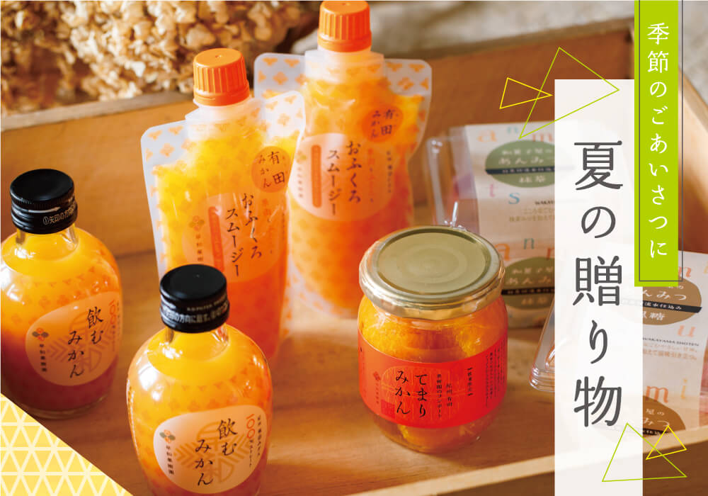 有田みかんをまるごと搾ったやさしい味わいの「早和果樹園」のジュースやスムージー、厳選素材をたっぷり使用し、豊かな味わいと上品な甘さが特徴のゼリーなど、女性に人気のフルーツを贅沢に使ったギフトです。