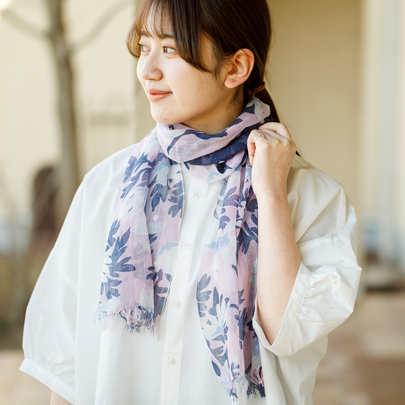 巻くだけで彩りもプラススカーフやストールは、冷房や紫外線対策に持っておくと便利なファッションアイテム。