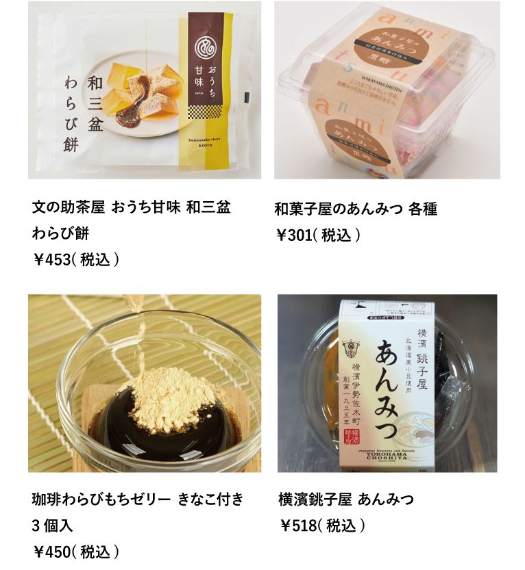 子どもからお年寄りまでみんな大好きなわらび餅やあんみつを集めました。食べているときの食感やのどごしは職人技が光るものばかり。プルプル、ツルン♪と美味しい和スイーツをぜひ堪能してみてください。