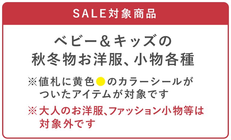 ※値札に黄色●のカラーシールがついたアイテムが対象となります