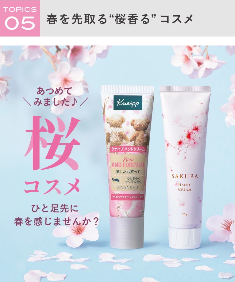 厳しい寒さの中にも時折、冬晴れの空も広がり、春が待ち遠しく感じますね。本日は桜コスメからキッズ服で今話題のプチプラパンツ、最新美容アイテムまで!いま、注目のアイテムをご紹介します♪