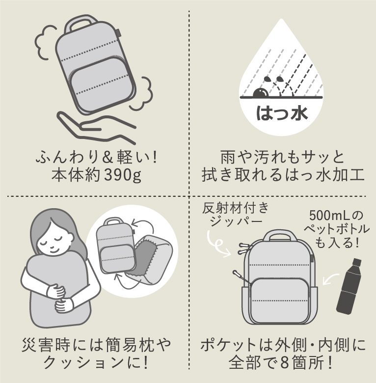 普段使いはもちろん、もしものときのグッズ入れにも◎