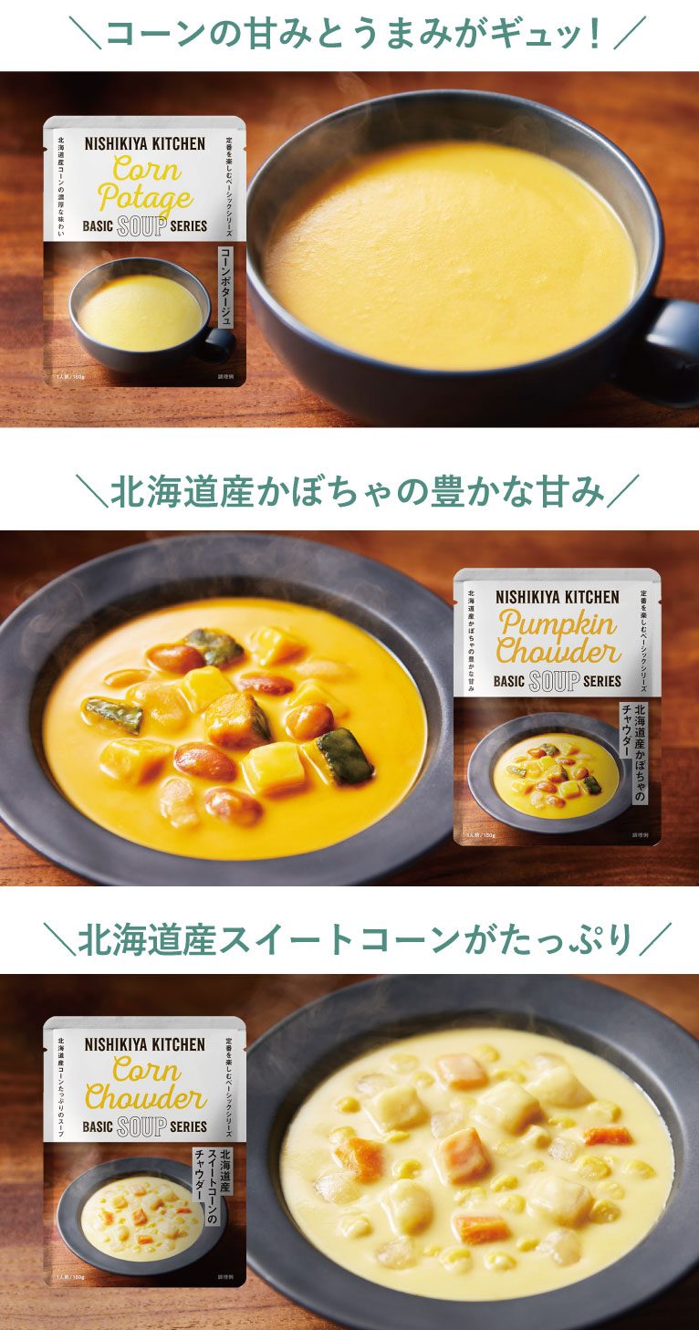 忙しい日やちょっと小腹がすいたときにぴったり!『ニシキヤキッチン』の食べるスープが今年も登場しました。手軽に本格的な味わいが楽しめるのはもちろん、野菜たっぷりで体にもうれしい人気シリーズ。慌ただしい毎日でも、時間をかけずにホッとできる食事をサポートします♪