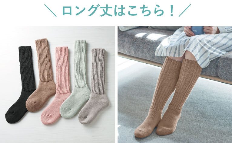 寒がりさんにはロング丈もおすすめ。ゆったり履けるリラックスリブで、くしゅっとたわませて履くのもおしゃれ!