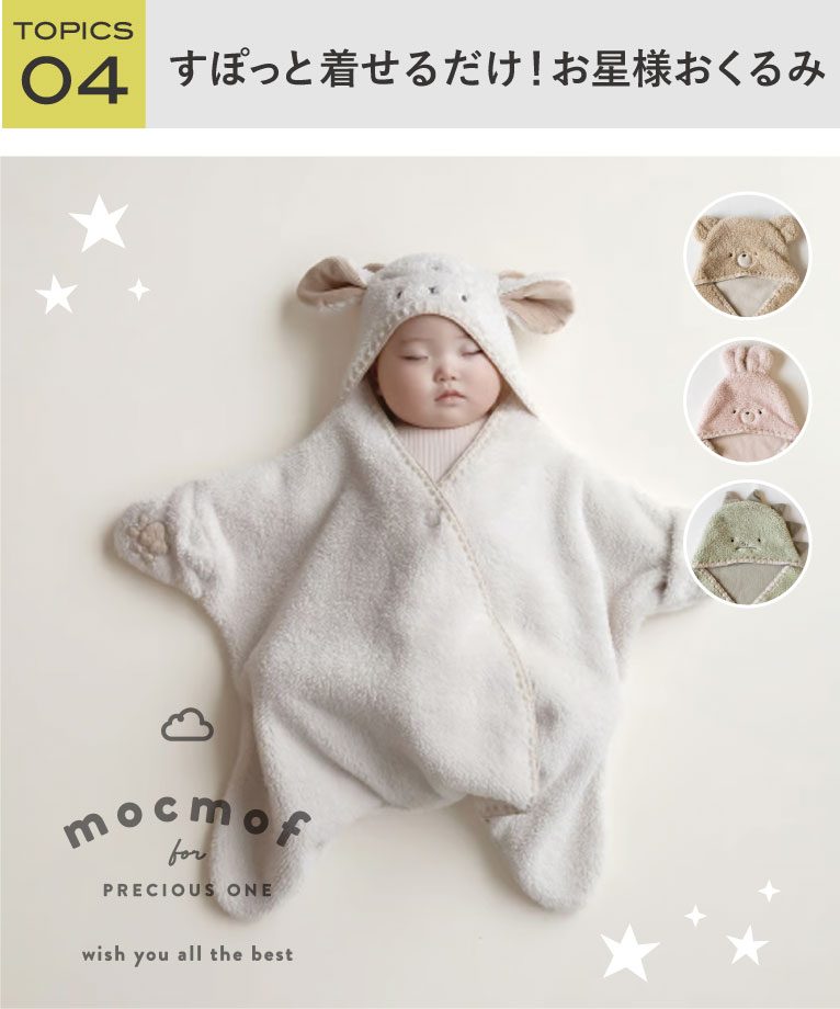 しっとりふわふわの肌ざわり♪着せるだけで防寒できるかわいいおくるみ