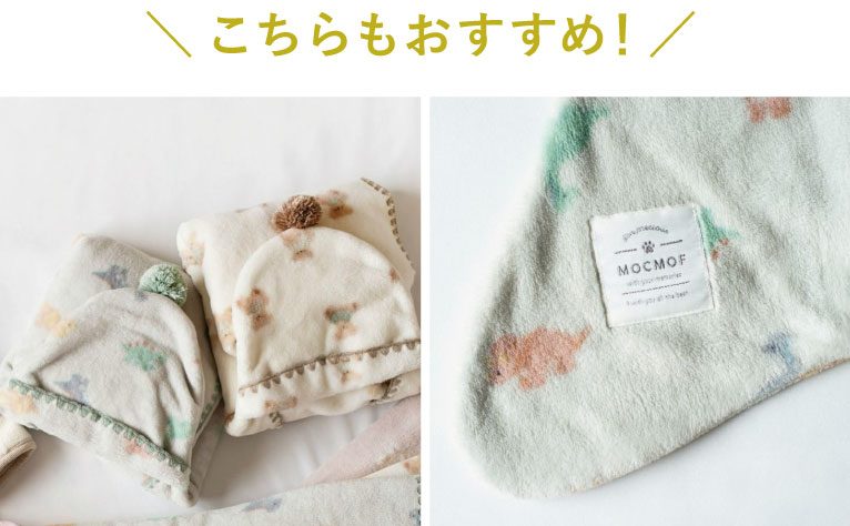 しっとりふわふわのフリース素材に、テディベアや恐竜柄をプリントしたベビーおくるみ。