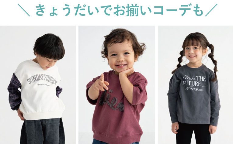 80~140cmのサイズ展開(※)なので、“きょうだい”でお揃いコーデを楽しめます♪