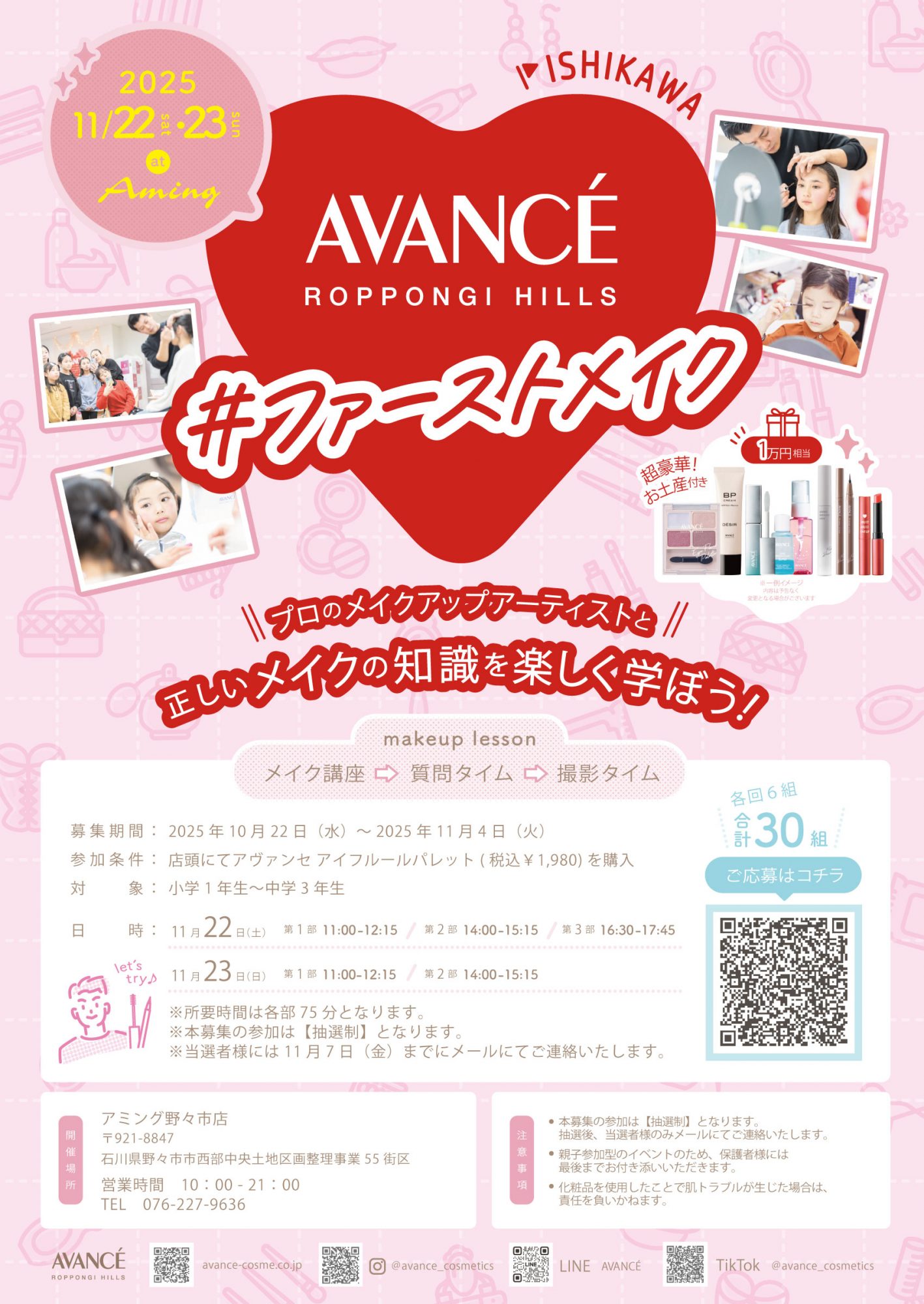 本イベントはメイクに興味がある子供たち向けにコスメメーカー @avance_cosmetics とメイクアップアーティストがメイクの基本を教える親子参加型のイベントになります♡