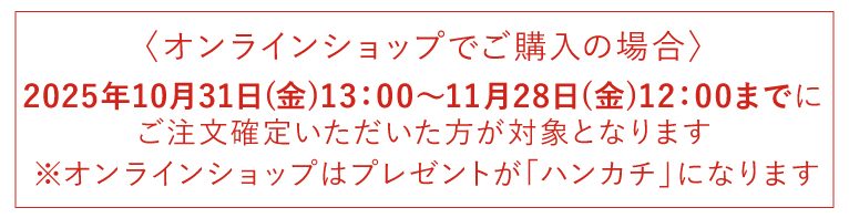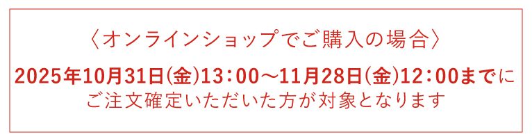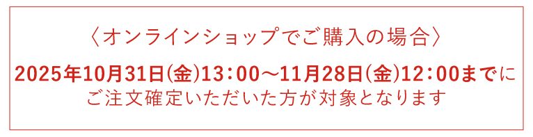 2025年10月31日(金)13:00~11月28日(金)12:00までにご注文確定いただいた方が対象