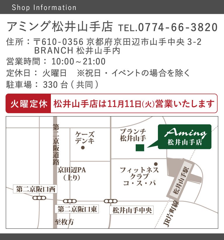 11月8日(土)朝10:00より「アミング松井山手店(京都府)」がリニューアルオープンいたします。