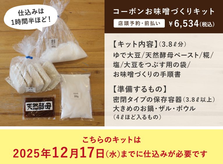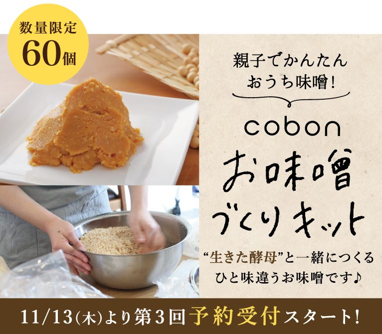 \第1回・第2回は即完!/実店舗限定『cobon(コーボン)』お味噌づくりキットが11/13(木)より予約開始!