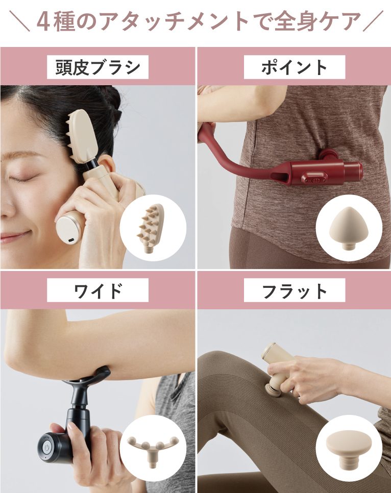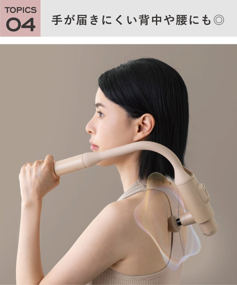 手が届きにくい背中や腰のケアには、楽な姿勢でケアできる専用アーム付き「ルルドガン」がおすすめ♪体へのフィット感を高めた専用アームで、よりしなやかに快適に全身をケアできるアイテムです。