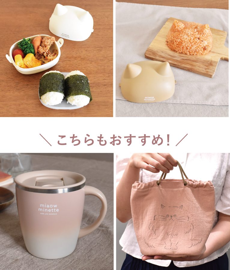 ねこ耳のデザインのフタが目を引く「にゃお ねこみみおにぎりケース」は上段におにぎり2個、下段におかずが入るかわいいサイズの2段弁当箱です。フタ部分はねこの形のごはん型としても使えます。