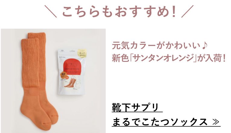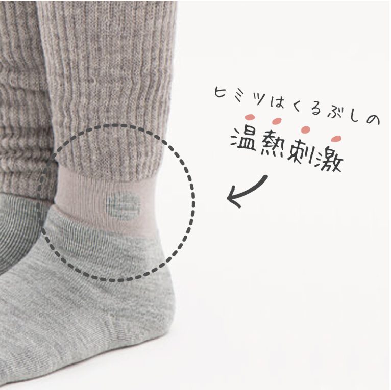 特許技術で足元から身体をじんわり温め、足首のツボ「三陰交」を特殊素材で温熱刺激。内側からポカポカとあたため、まるでこたつに入っているようなぬくもりに包まれます。