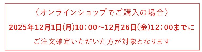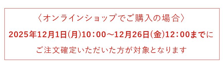 2025年12月1日(月)10:00~12月26日(金)12:00までにご注文確定いただいた方が対象