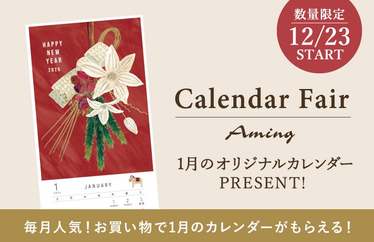 アミングでお買い物をしていただいた方に先着で「1月のオリジナルカレンダー」をプレゼント!