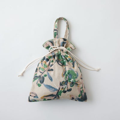 【Amingオリジナル】手描きホワイトラインフラワー 巾着(ハンドル付き)のレビューを書く